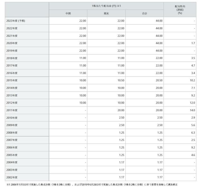 最後にソフトバンクグループの配当推移を確認しましょう。