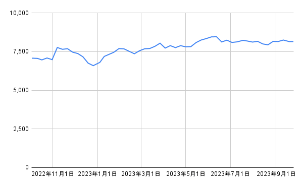 - 1年後の株価の終値: 8144円