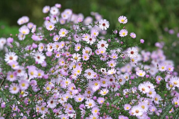 宿根アスターは「クジャクアスター」とも呼ばれるキク科の多年草。花色は白、紫、ピンク、赤、青など。細い花弁の小花が株一面に散りばめられたように咲きます。※参考価格:500~700円前後(3号ポット苗)