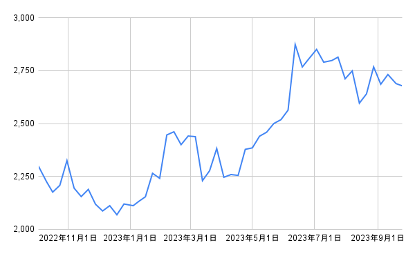 - 株式の取得価格:2319円(取得日の終値)
