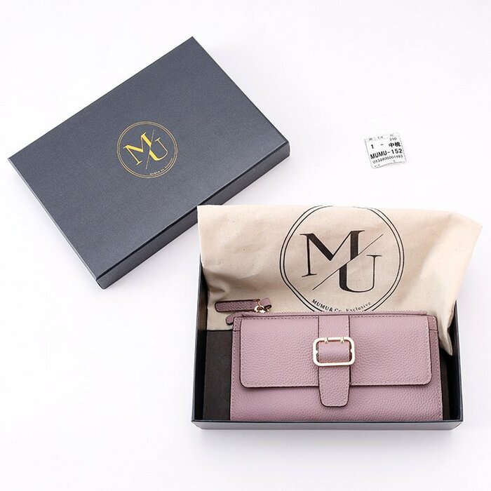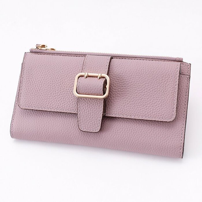 MUMUさんの本格革財布は、その質感だけでなくおしゃれな見た目にもこだわりが。フロントのベルトデザインがポイントとなっており、スマートに持てる長財布タイプというのも大人のかわいさを演出してくれています。