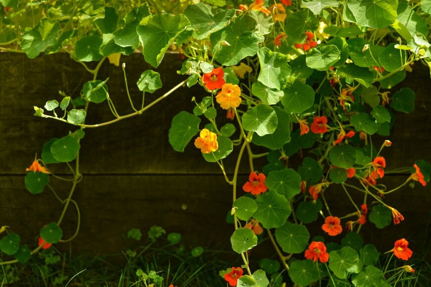 春や秋にビタミンカラーの明るい花を咲かせるナスタチウム。蓮のような丸いフォルムの葉が特徴的で、「キンレンカ(金蓮花)」とも呼ばれています。