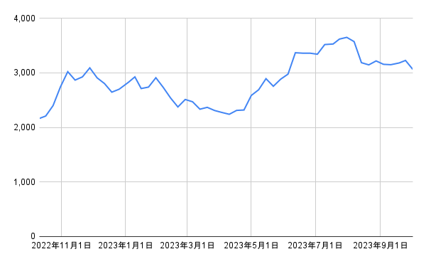 - 1年後の株価の終値: 3062円