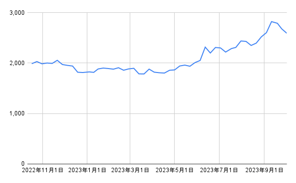 最後にトヨタ自動車の株価の推移を確認しましょう。