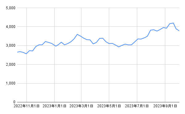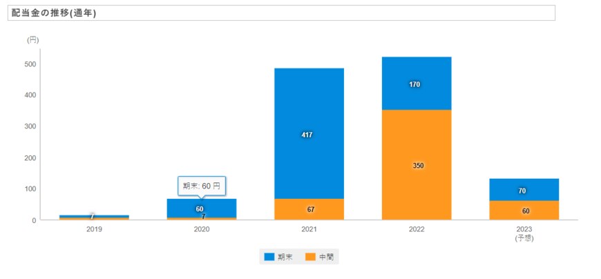 最後に日本郵船の株価と配当金の推移を確認しましょう。