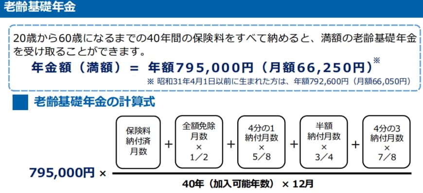 老齢基礎年金は、国民年金保険料を支払った期間や免除期間などの期間によって計算されます。
