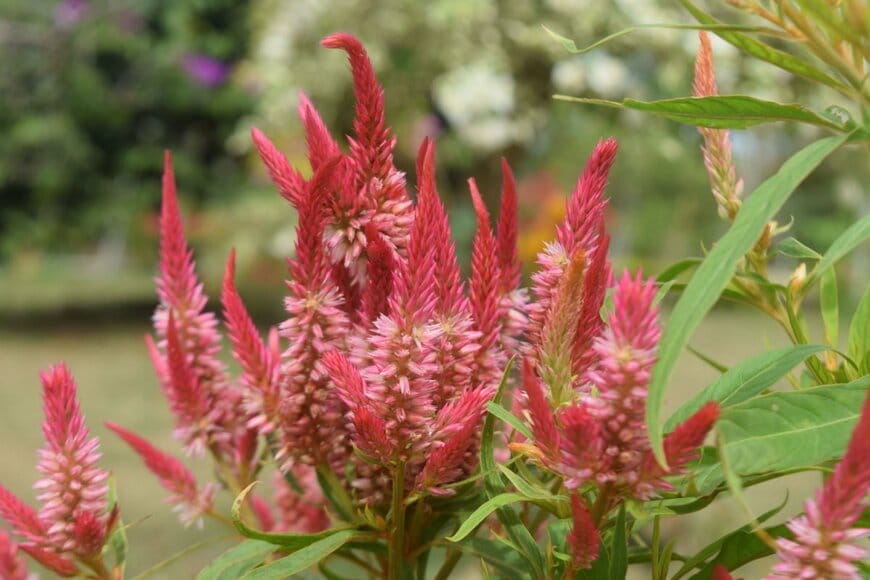 ケイトウの仲間のセロシアはロウソク型の花穂が美しい一年草です。近年はオシャレなニュアンスカラーも登場しており、秋らしい花姿で寄せ植えにもよく使われています。