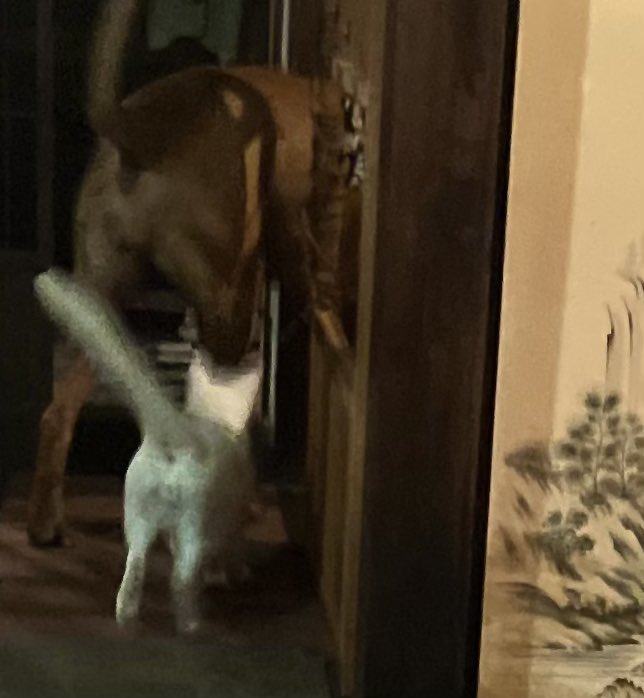 また、その後の飼い主さんのポスト「ネコリアン、犬の事が好きすぎるので犬が動くと基本ついていく」と、同居のお姉さん犬(アギトちゃん)についていく姿を見た人たちからは「その後のアギちゃんとのからみが、ほっこりしそうですね」と、想像をふくらませた書き込みも寄せられるなど、投稿は賑わいを見せています。