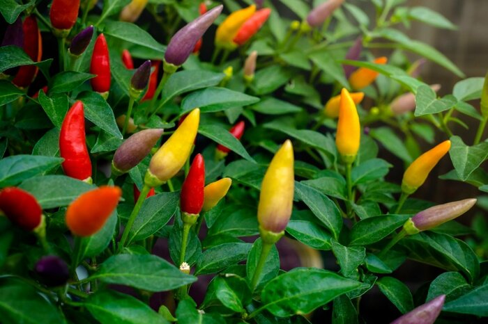 赤・黄・紫・オレンジなど色とりどりの実がカワイイ観賞用トウガラシ。食用ではなく園芸種として品種改良されたトウガラシです。