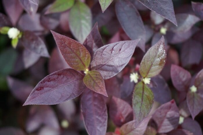赤・黄・ピンク・オレンジ・紫などカラフルな葉色が魅力のアルテルナンテラ。10~11月に小さな花が咲く品種もあり、寄せ植えにもよく利用されています。