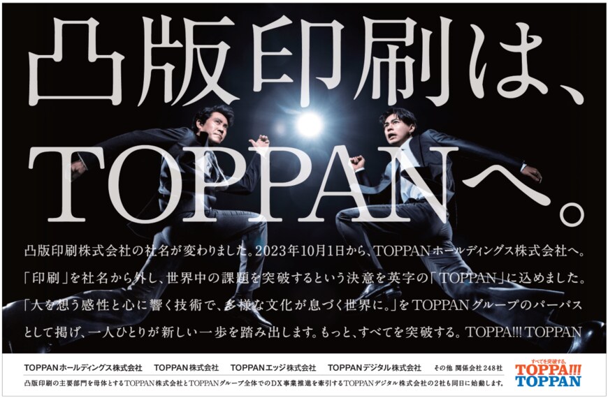 株主総会で決定された期日どおり、2023年10月1日、凸版印刷株式会社は、「TOPPANホールディングス株式会社」へと変更となった。