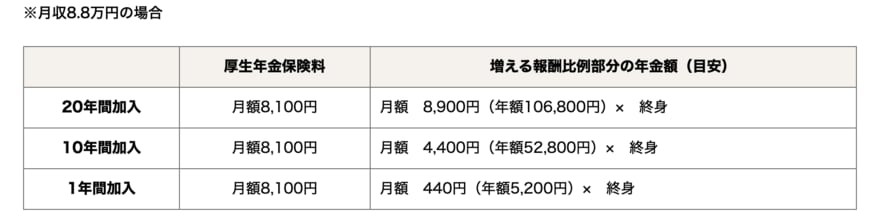 具体例として、上乗せされる厚生年金の月額と年金保険料の目安は下記のとおりです。