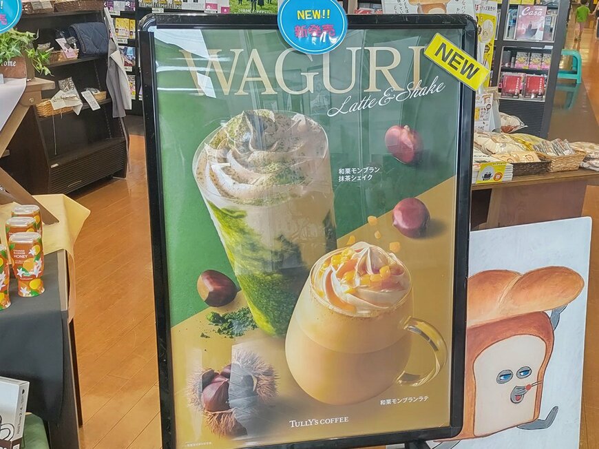 今秋の新商品として販売されたのは、和栗モンブランシリーズです。スイーツとして定番のモンブランをタリーズ風に開発したカフェラテ。さらに和風の抹茶にミルキーな味わいが加わる抹茶シェイクの2品が登場です。
