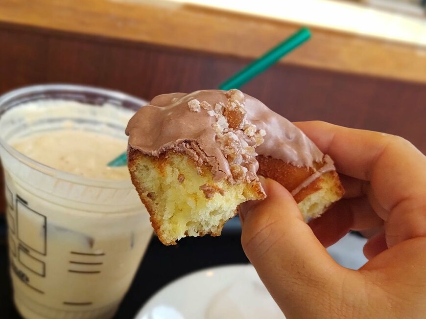 ドーナツの部分はふわっとしながら、甘さがしっかり。サイズも一般的なドーナツよりもやや大きめなのが嬉しいです。粒感のあるマロングラッセはサクッとしており、こちらも栗の味わいを楽しめます。