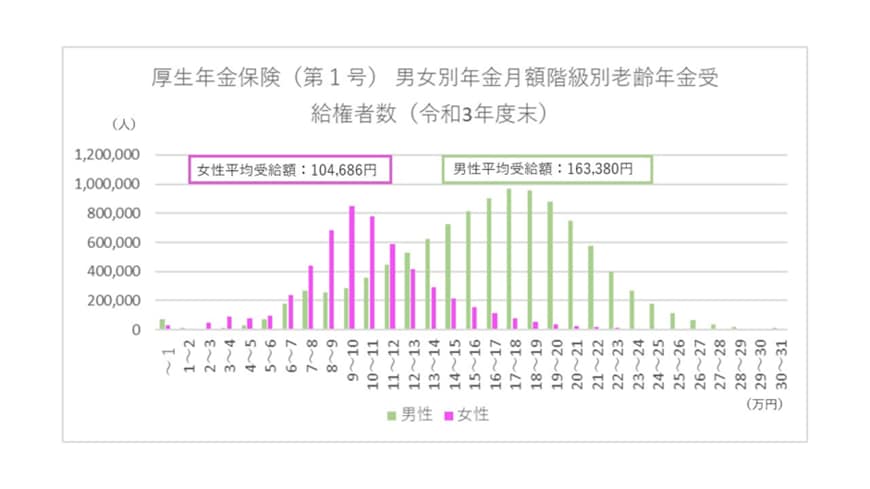 男女別にみると男性は16万3380円、女性は10万4686円となっています。