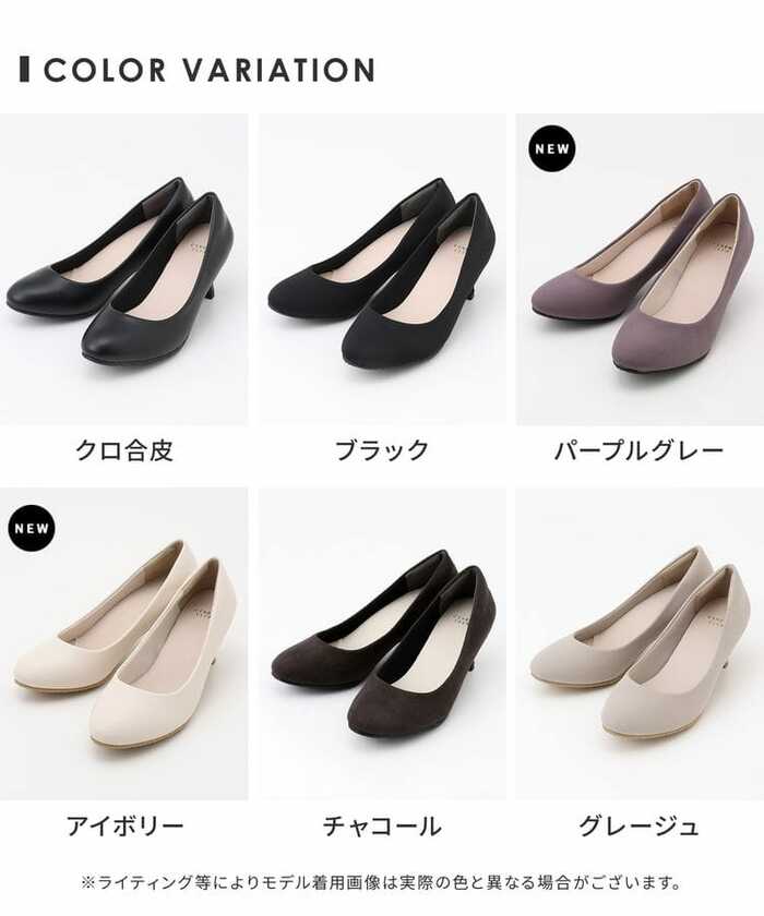 シンプルでベーシックなアーモンドトゥのパンプス。6cmと少し高めのヒールなので、美脚効果は抜群!インソールに吸水・速乾・抗菌加工を施しており、ムレなく、疲れにくいパンプスです。