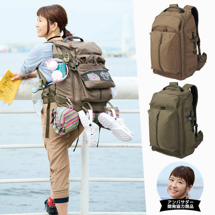 旅YouTuberうめのさんと共同開発したこちらのバックは、サイドにナスカン、Dカン付き。