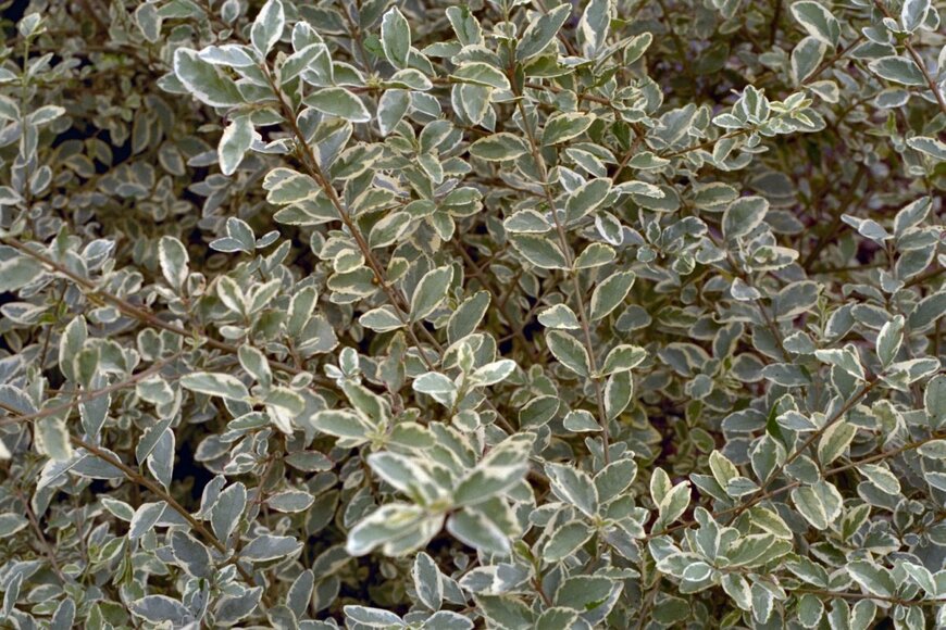 ホワイトやイエローの斑入り葉が爽やかなシルバープリペット。鉢植えでも育てやすく、旺盛に生長します。こまめに剪定をおこなって樹形を整えましょう。