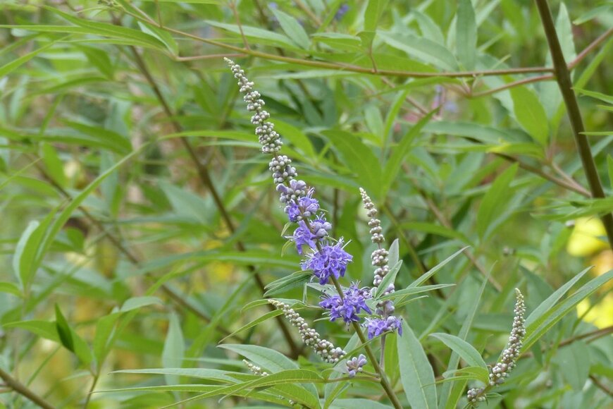 注目のセイヨウニンジンボクは、ダークカラーの葉色が大人っぽい低木です。コンパクトに育つため、鉢植えにして玄関に飾ってみるのもおすすめ。夏から秋にかけて咲く、美しいパープルやブルーの小花も見逃せません。※参考価格:5000円前後(5号鉢)
