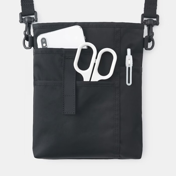小物が入るポケットが中にも外にもある便利なショルダーバッグ。スマホはもちろん、仕事中に必要なハサミやペンなどをコンパクトにまとめて持ち運ぶことができます。