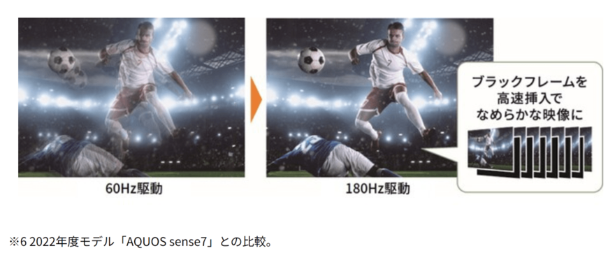 シャープ独自の90Hz可変駆動IGZO OLEDを採用しており、高い省エネ性能と、最大で180Hz相当のなめらかな表示を両立している。