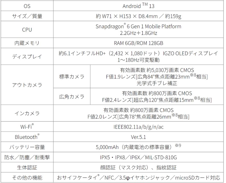 - シャープ株式会社 スマートフォン「AQUOS sense8」