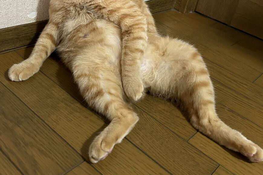 そこに写っているのは1匹の猫ちゃん。茶トラ柄のボディが印象的な男の子「リチャード」くんです。リチャードくんはスヤスヤと眠っているようですが、視線を惹くのはリラックス感に満ちあふれたポージング!