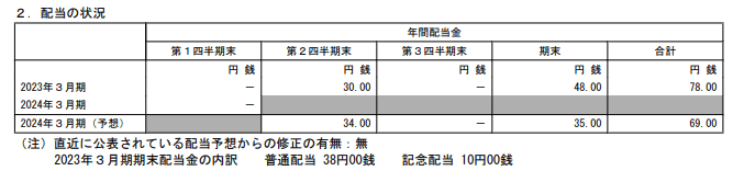 キッコーマンの株式を1年前に買い、持ち続けたとすると、2023年3月期の期末配当と2024年3月期の中間配当(予想)を受け取ることができます。
