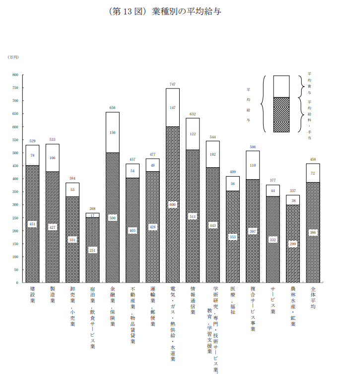 2023年9月27日に国税庁が公表した資料によると、最新の日本人の平均年収は458万円。そして一番高い業界は「電気・ガス・熱供給・水道業」となりました。