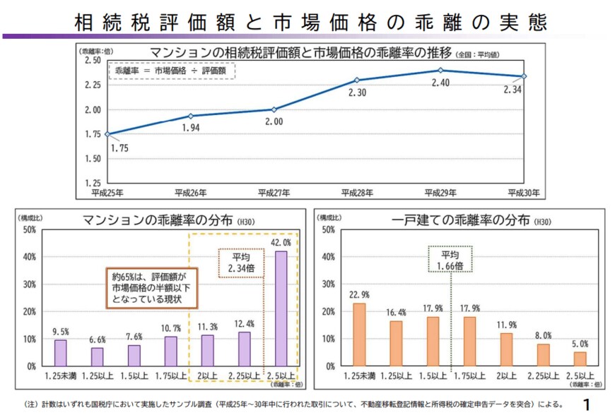マンションでは実際に購入した価格(市場売買価格)と相続税の評価額との間に大きな差が生じています。