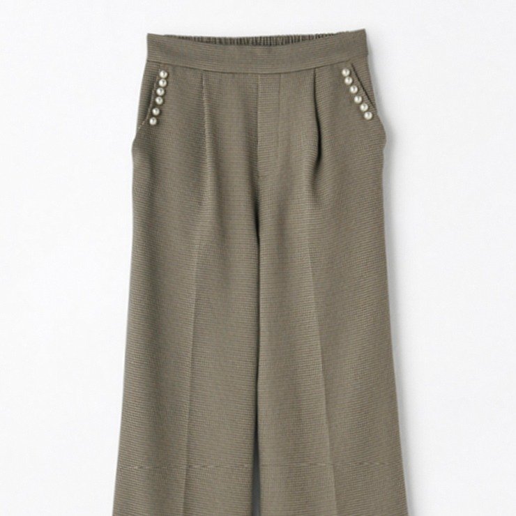 ポケット部分に5つ並んだパールボタンが上品さをプラスしてくれます。大人女性の通勤コーデやデートコーデに活用することができそうです。