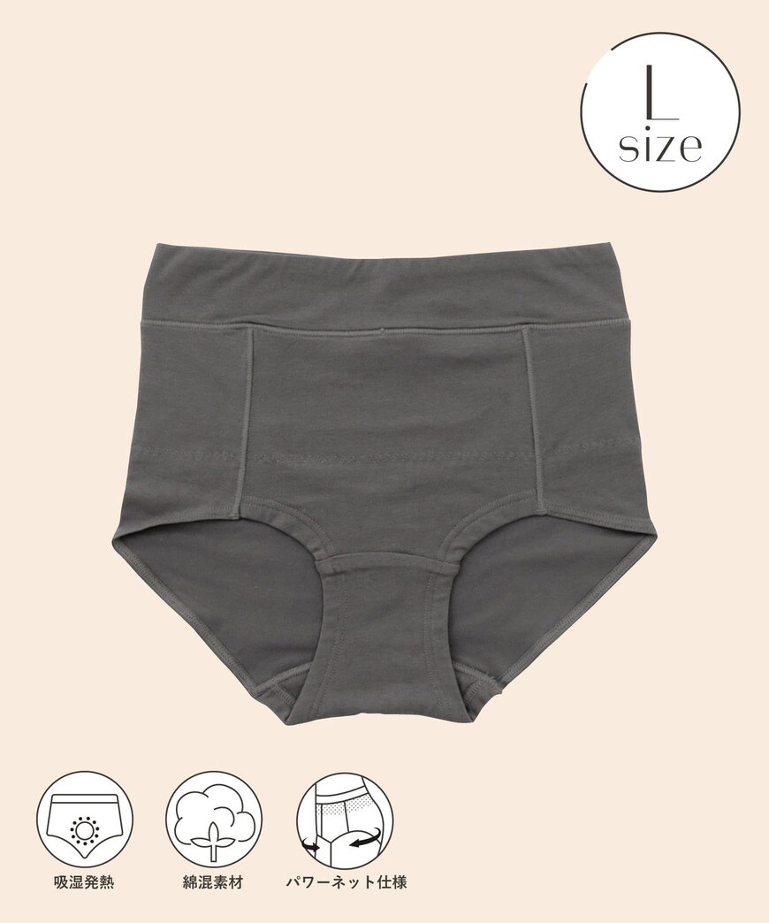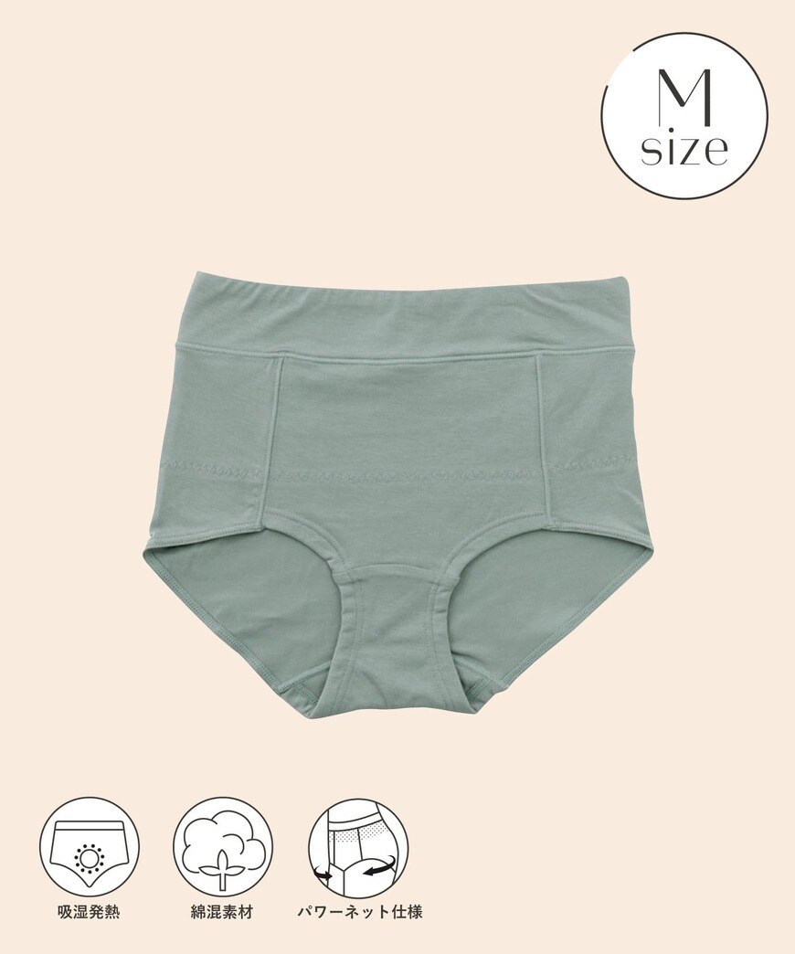 「ショーツお腹サポート」と同様お腹周りが冷えないよう吸湿発熱素材が使われているのもポイント。腰を引き締めながらお腹の冷え対策もできます。