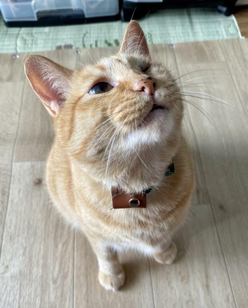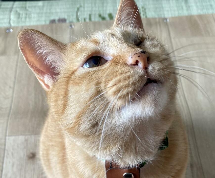 そんな猫ちゃんのセリフ風のつぶやきとともに投稿されたのは、1枚の写真でした。たくさんの注目を浴びたのは、茶トラ猫の男の子「モカ」くん。子猫の頃に野鳥と戦っているところを保護され、投稿者さんの家族に加わりました。