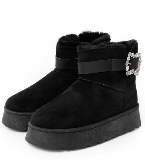 「ビジューバックルベルトムートンショートブーツ」は、ボリュームのあるシルエットが魅力的のショートブーツ。モコモコとやわらかな肌触りで、あたたかさだけでなく履き心地も快適です!