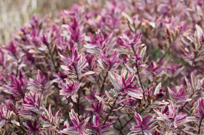 へーべは南半球生まれのオージープランツのひとつ。夏に美しい花を咲かせる常緑多年草で、秋~冬にかけてシックな色合いに葉が色づくのが特徴です。