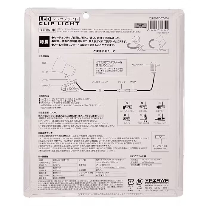 【ヤザワコーポレーション 9W昼光色LEDクリップライト CLLE09D07WH】3780円(税込)