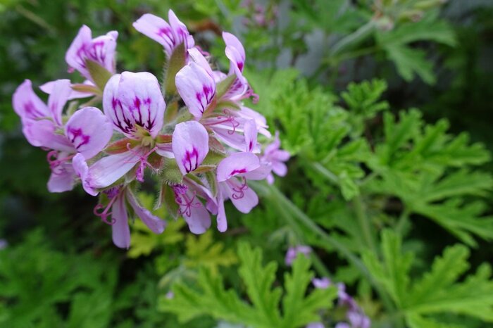 蚊連草(カレンソウ)は、ローズゼラニウムとシトロネラの交配種。葉にはレモンのような香りがあり、初夏にはピンク色の可憐な花も楽しめます。