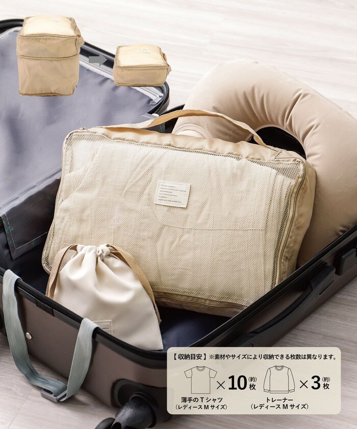何日か分の衣類にスキンケア用品といった小物など、何かと荷物がかさばりがちな旅行。そんなときは、以下のような荷物をコンパクトにまとめられるトラベルグッズを活用するのがおすすめです。