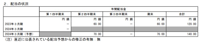 三井化学の株式を1年前に買い、持ち続けたとすると、2023年3月期の期末配当と2024年3月期の中間配当(予想)を受け取ることができます。