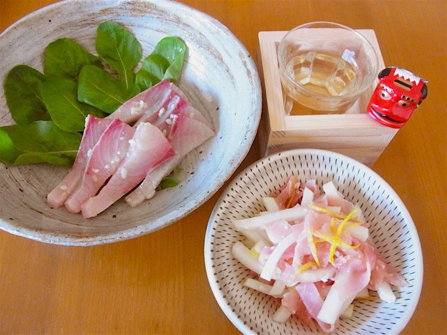 そしてもう一品。私の実家は九州なので、正月といえば出世魚のブリを食べないといけないのです! 茶色く照り照りツヤツヤに煮たものもおいしいのですが、やっぱり豪華に刺身でいただきましょうか。塩麴に30分くらい漬けておくとブリの脂っこさが分解されてスッキリ食べられてしまいます。