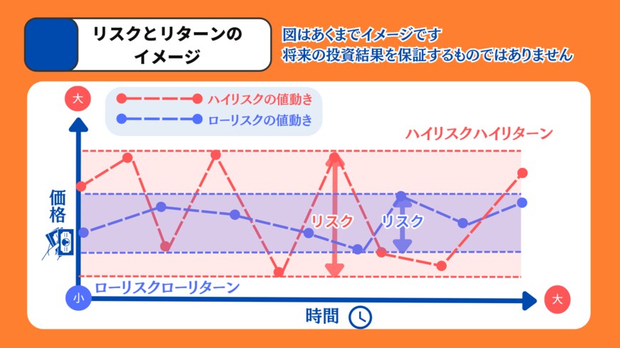 この「価格のブレ幅」が大きければハイリスク(ハイリターン)であり、小さければローリスク(ローリターン)ということになります。