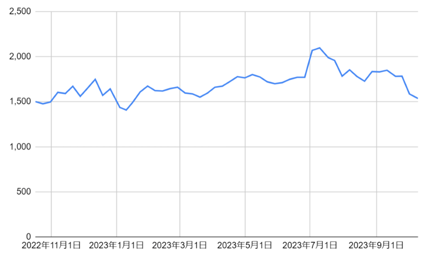- 1年後の株価の終値:1535円