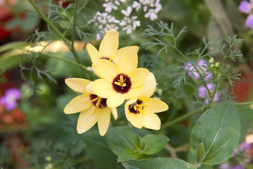 細い茎の先にたくさんの花を咲かせるイキシア。可憐な見た目ですが、茎はとても頑丈で強健な性質です。