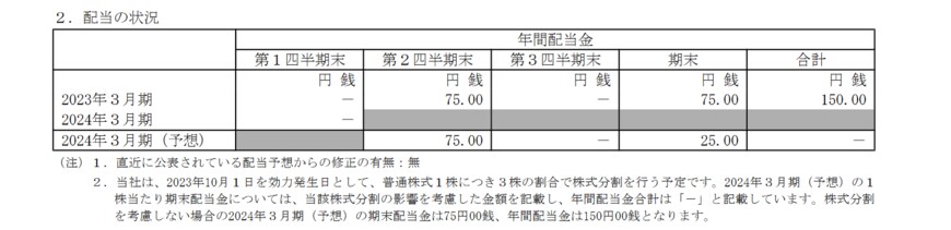 - 2023年3月期・期末配当:75円