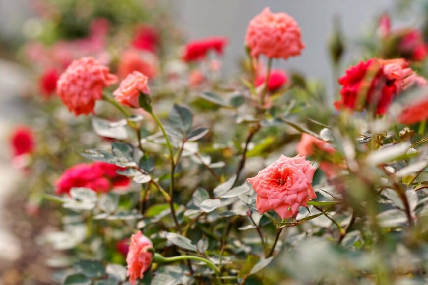 もともとバラには多様な花色がありますが、ミニバラも同様です。通常のバラのサイズよりコンパクトに育てられるので、キュートな花色をいくつか揃えて楽しむのもいいですね。