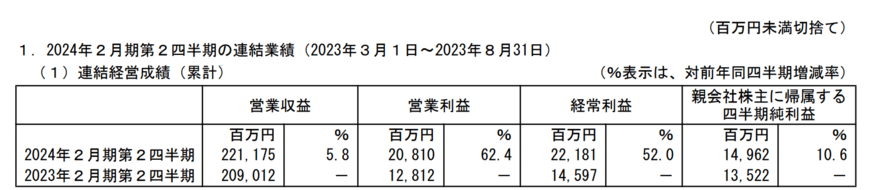 高島屋は、2023年10月13日、2024年2月期第2四半期連結決算を発表しました。