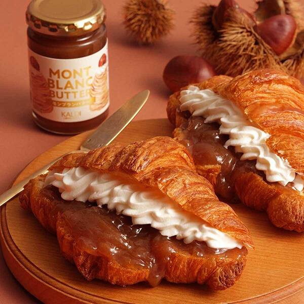 渋皮付きの栗を甘露煮にし、バターを合わせた濃厚リッチな味わいに仕上げたモンブランバターです。パンやクラッカーにのせたり、お餅やアイスにそえて食べるのもおすすめ。