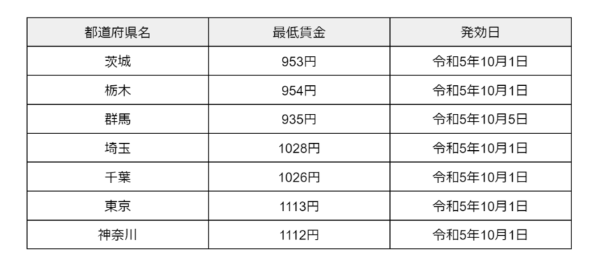 10月から最低賃金アップへ「パートの年収の壁の見直し」とは? 厚生労働省「地域別最低賃金の全国一覧」で見る都道府県別の最低賃金 2023.10.21 07:00 公開 執筆者木内 菜穂子 copy URL 目次[開く] 10月から最低賃金がアップし1004円に 都道府県別の最低賃金【一覧表】 パートの年収の壁の見直し 社会保険に関する壁は106万円と130万円 税制に関する壁は103万円・150万円・201万円 まとめにかえて 参考資料 都道府県別の最低賃金【一覧表】 【北海道・東北地方】 出所:厚生労働省「地域別最低賃金の全国一覧」をもとに筆者作成 【関東地方】 出所:厚生労働省「地域別最低賃金の全国一覧」をもとに筆者作成 【中部地方】 出所:厚生労働省「地域別最低賃金の全国一覧」をもとに筆者作成 【近畿地方】 出所:厚生労働省「地域別最低賃金の全国一覧」をもとに筆者作成 【中国・四国地方】 出所:厚生労働省「地域別最低賃金の全国一覧」をもとに筆者作成 【九州・沖縄地方】 出所:厚生労働省「地域別最低賃金の全国一覧」をもとに筆者作成 8つの都道府県で1000円台となる一方、地方では800円台や900円台が多くみられます。 パートの年収の壁の見直し < 1 2 3 4 > 関連タグ #最低賃金 #パート #年収の壁 注目コンテンツ 持病があっても入りやすい医療保険。人気の保険はこの保険![PR] 30秒でオススメの医療保険の特約がわかる!保障で悩むならまずは診断[PR] 働けなくなった時の備えはできている?人気の就業不能保険をチェック[PR] あわせて読みたい