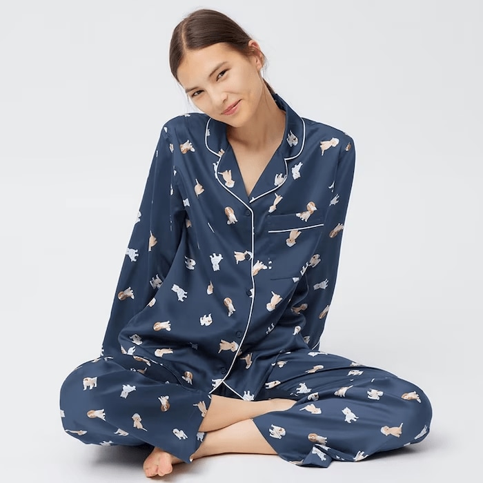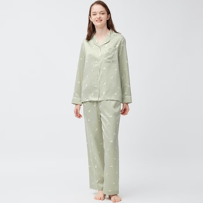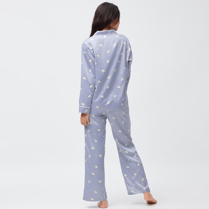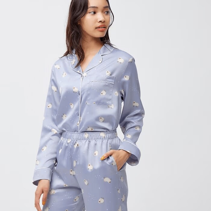 サテン素材を使用していて、高級感がある光沢となめらかで女性らしい風合いが特徴的なパジャマです。可愛らしいワンちゃんや、素敵な夢が見られそうな羊模様の2種類が新たに新作として追加されました。