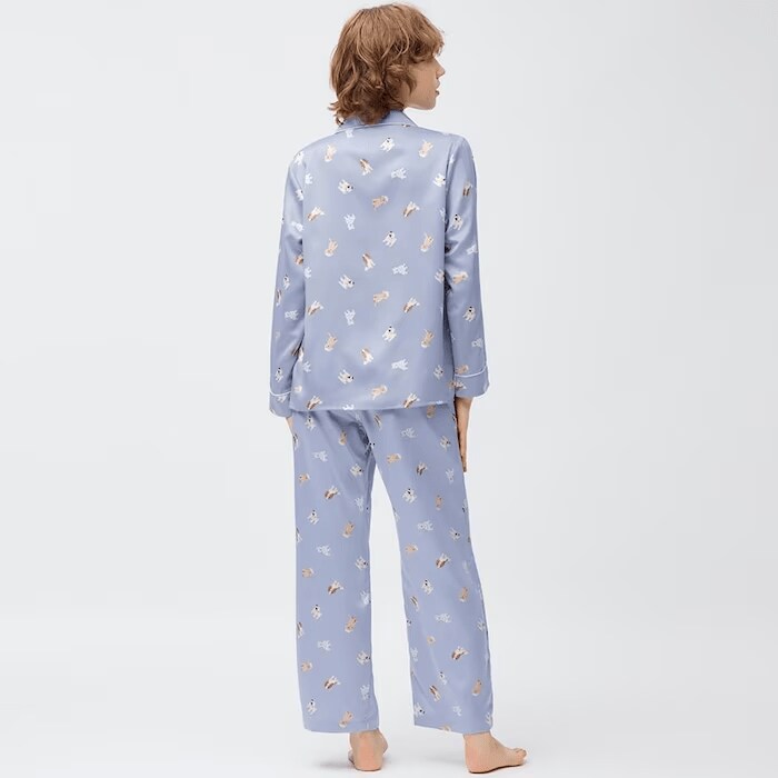 3.1 サテンパジャマ(長袖&ロングパンツ)ドッグ 柄